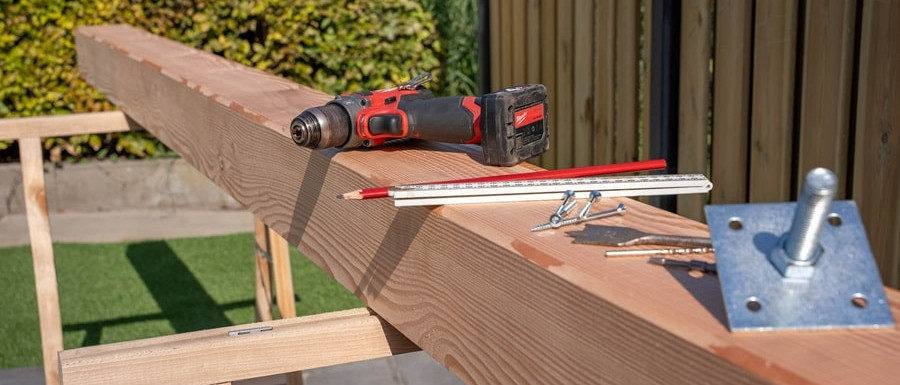 De eerste stap is het bevestigen van de voetplaat op de betonpoer met een bout. Daarna bevestigt u de bovenplaat aan de paalvoet met schroeven. Zodra dit klaar is, kunt u de bovenplaat in een horizontale beweging op de voetplaat schuiven en de verbinding maken.